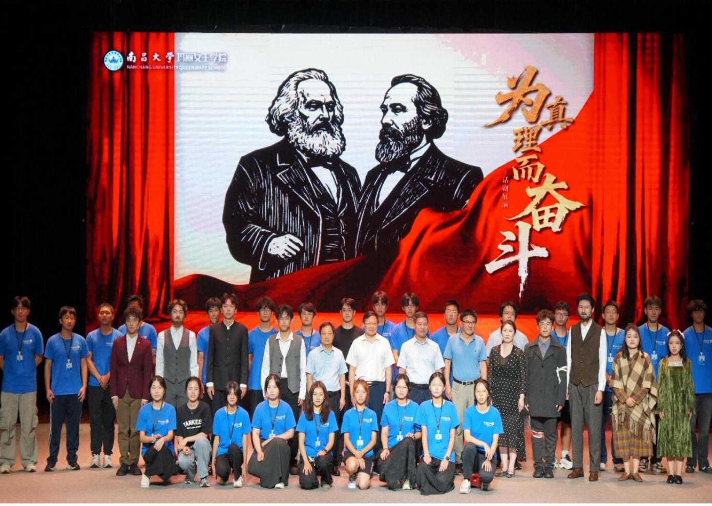 该剧主创团队全部来自玛丽女王学院,通过对人物性格的精雕细琢、对话剧情节的极致挖掘,打造丰满的艺术形象,深情讴歌了马克思和恩格斯崇高的革命理想、忘我的奉献精神与不屈的斗争意志。整场演出掌声不断,从舞台设计到精湛表演、从内容情节到艺术表现都获得了在场师生的高度赞扬。不少同学表示,这场话剧激励着他们以实际行动诠释“为共产主义奋斗终身”的铿锵誓言,努力成为兼备家国情怀与国际视野的创新型医学人才,为教育强国贡献南大力量。
