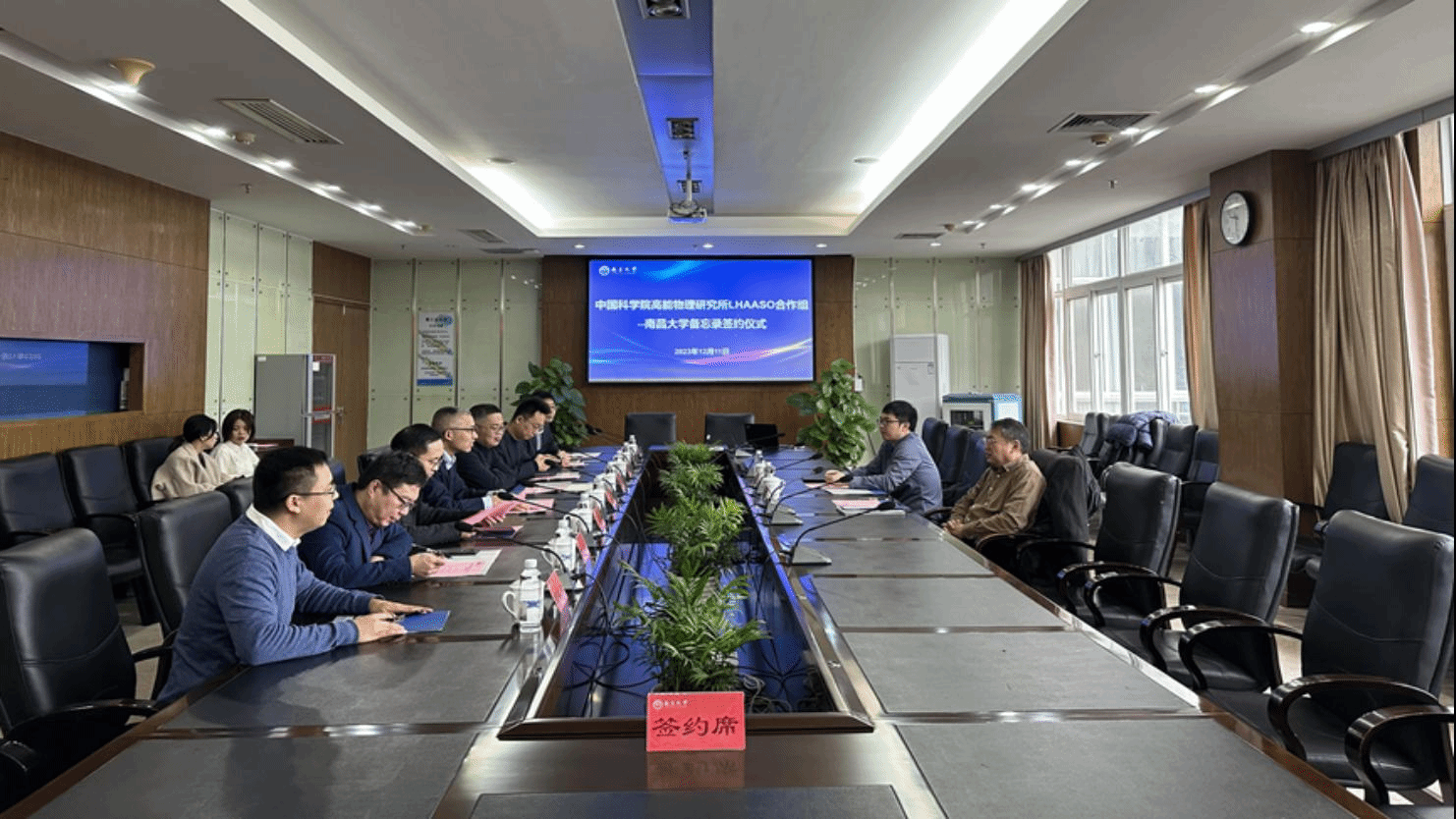 南昌大学与中国科学院高能物理研究所LHAASO合作组备忘录签约仪式在前湖校区办公楼举行。副校长聂少平出席会议。聂少平对曹臻院士一行的到来表示热烈欢迎,简要介绍了学校办学历史、学科建设、改革发展等情况,表达了双方通力合作、共谋发展的愿望。曹臻院士对南昌大学近年来取得的成绩表示认可与赞赏,希望双方发挥各自优势特色,加强沟通、扬长补短,共谋教育事业高质量发展。会上,曹臻与我校物理与材料学院院长王立代表双方签署了LHAASO_MoU(Nanchang University)和《LHAASO合作备忘录(南昌大学)》。