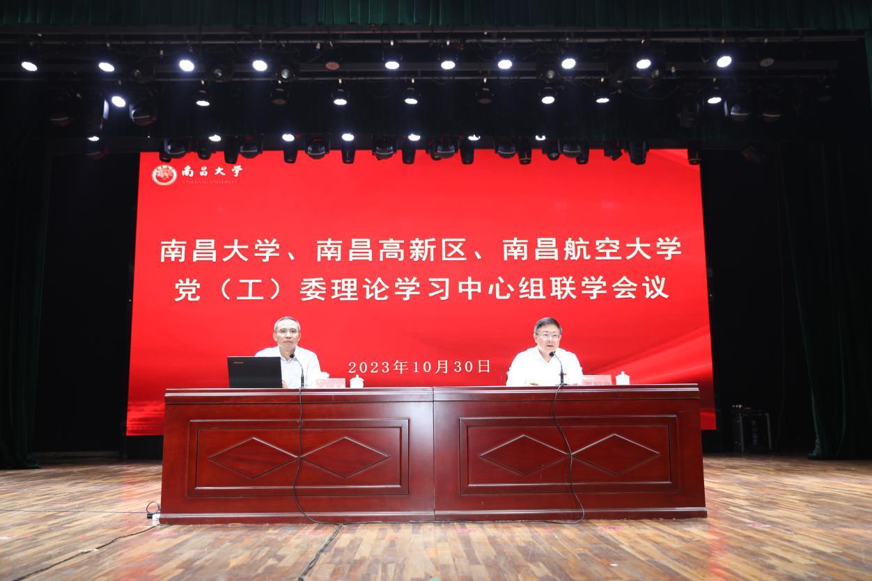 本网讯(南轩)在南昌大学全面纵深开展“新征程、再出发”使命愿景大讨论之际,10月30日下午,南昌大学与南昌高新区、南昌航空大学开展党委理论学习中心组联学会议,深入学习宣传贯彻习近平总书记考察江西重要讲话精神,聚焦“科研人员创业与实现科研成果产业化”主题,开展专家报告和交流研讨,旨在促进校地协同,加强和促进“产业链、创新链、人才链、政策链、资金链”深度融合,坚定不移助力江西打造“三大高地”、实施“五大战略”,服务区域经济社会高质量发展。南昌大学党委书记罗嗣海主持会议并讲话,南昌高新区党工委副书记吴前进,南昌航空大学党委书记李德平出席会议并讲话。南昌航空大学校长卢超、和君职业学院党委书记王德平等出席会议。