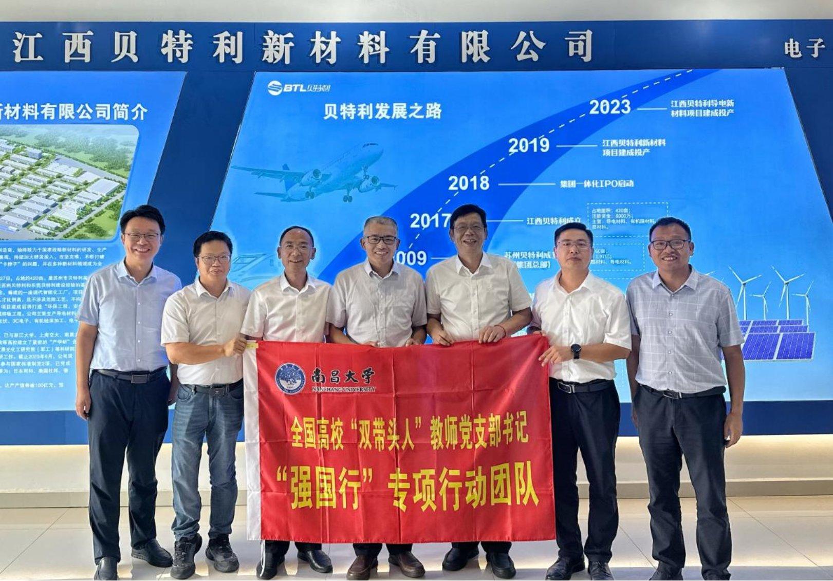 聂少平一行来到江西九江彭泽县矶山工业园区,重点走访了九江贝特利科技有限公司。座谈会上,校企双方就人才需求标准、产学研合作模式、科技成果转化以及学生实习实践等议题进行了广泛深入的交流探讨,达成了多项合作共识。聂少平表示,南昌大学拥有丰富的科研人才资源,企业具备贴近市场的实践优势,双方应通过务实合作实现资源互补、互利共赢。