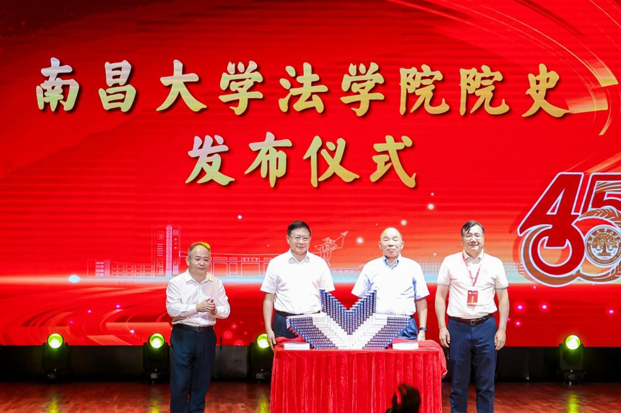 现场还举行了院史发布仪式,罗嗣海等领导共同为《南昌大学法学院院史(1980-2025)》揭幕。
