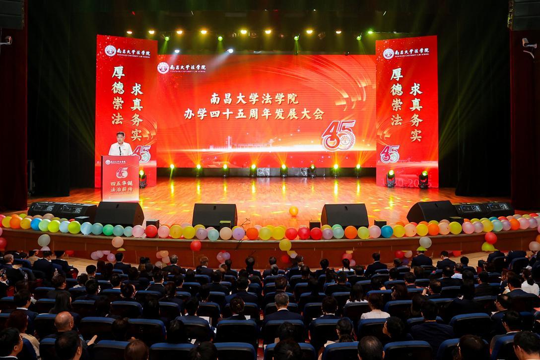 本网讯(法学院)金秋映湖,桂香盈袖;四五华诞,法治薪传。10月18日至19日,南昌大学法学院办学45周年发展大会在前湖校区举行。校党委书记罗嗣海,副校长吴丹,学校原党委副书记程样国、徐求真等出席相关活动。历任院系领导、退休和调离教师、各届校友代表和在校师生360余人欢聚一堂,共忆峥嵘岁月,共叙桃李深情,共谋学院发展。