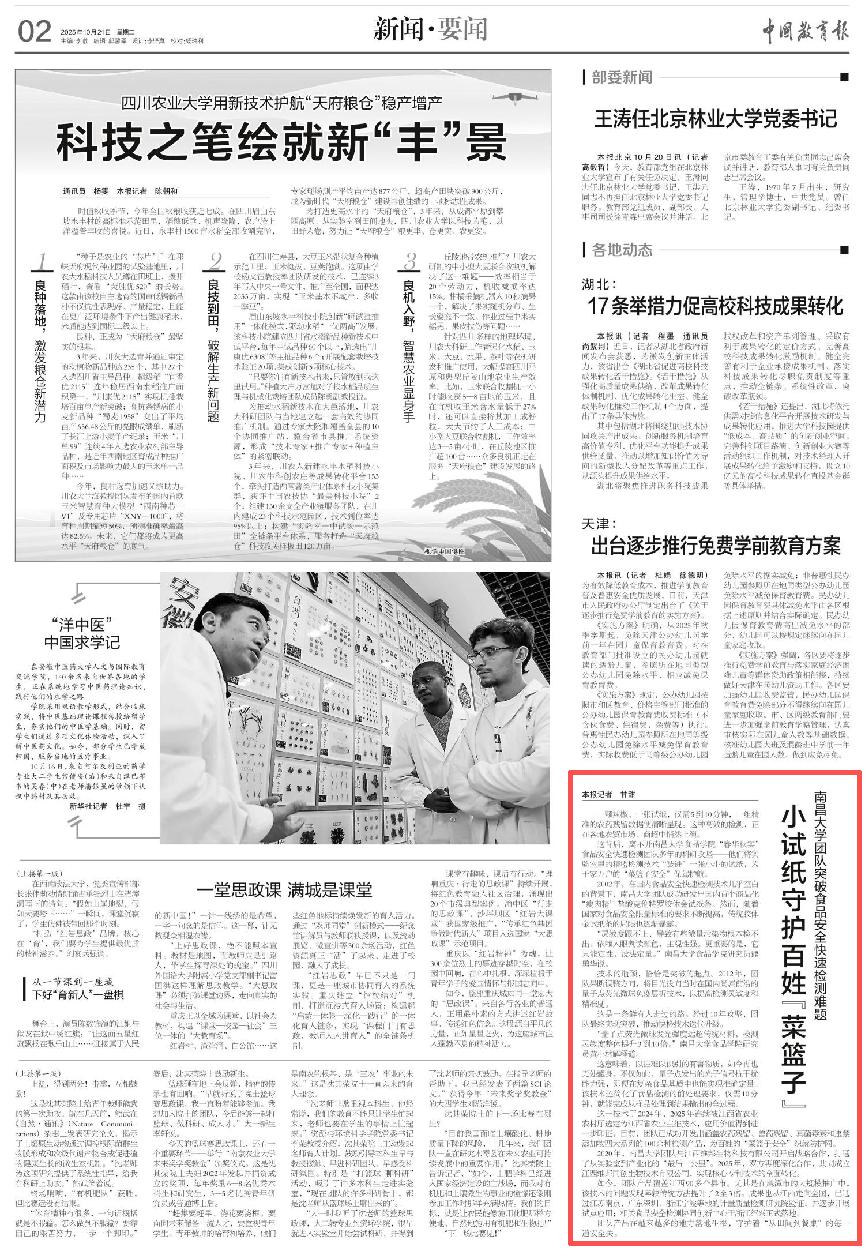 编者按:10月21日,《中国教育报》刊发题为《南昌大学团队突破食品安全快速检测难题 小试纸守护百姓“菜篮子”》文章,报道我校“春华秋实”食品安全快速检测团队突破食品安全快速检测难题,守护“从田间到餐桌”的每一道安全关。详情如下: