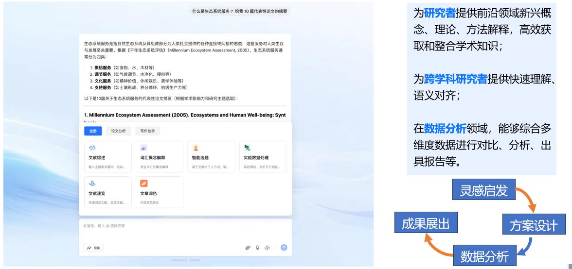 GEST-CEE的核心是一个高达700亿参数的生态经济学科基座大模型,它以中国生态经济学自主知识体系为内核,精筛了百万篇级的高质量知识文档库。该模型通过大模型自动标注辅以人工精细标注,构建起一个百TB级的精标语料库为大模型实现知识融合、形成“正确的AI价值观”奠定了基础。此外,GEST-CEE还汇聚了10TB级的经济社会生态时空大数据,让大模型的能力实现了从单一的“文本问答”向复杂的“跨模态数据处理”的关键跨越。GEST-CEE不仅能理解生态经济学的理论文献,还能分析和处理地理信息、卫星遥感、经济统计、污染监测等时空数据。这种“理论+实践”的数据融合,具备解决真实世界复杂生态经济问题的底座能力。