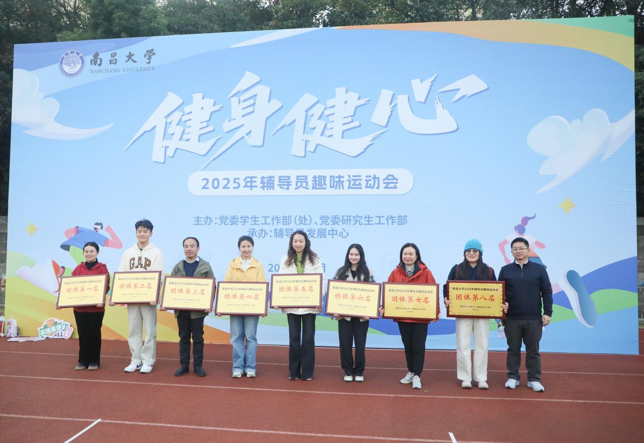 本网讯(党委学生工作部 付自强)11月18日下午,南昌大学2025年“健身健心”辅导员趣味运动会在前湖校区修贤运动场举行。活动旨在进一步加强辅导员队伍建设,培育辅导员团队文化,增强凝聚力和向心力。校党委书记罗嗣海,党委常委刘建光等为200余名本科生、研究生辅导员加油助力。