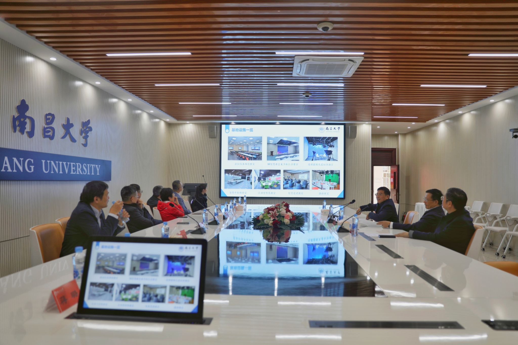 本网讯(教育技术与教学资源中心)11月23日下午,中国教育技术协会会长杨宗凯,副会长曾德华、钟晓流、陈丽、黄先开、张少刚等来校,围绕教育技术领域的创新实践与未来发展方向,展开深入交流与专业指导。校党委书记罗嗣海、江西省高等教育学会教育数字化分会会长汤文亮等陪同调研。
