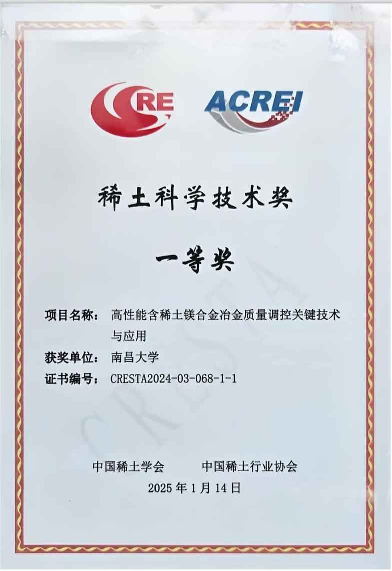 南昌大学作为国家稀土领域的重要组成单位,积极贡献“稀土力量”。2017年获批江西省轻质高强结构材料重点实验室且评估优秀,2019年成立稀土研究院,2024年获批轻合金材料江西省重点实验室,是中国稀土学会两个主委会挂靠单位,包括稀土抛光材料与界表面调控加工技术专委会和稀土轻合金专委会,在稀土技术创新和产业应用不断深耕,在国内外具有较强产业影响力。