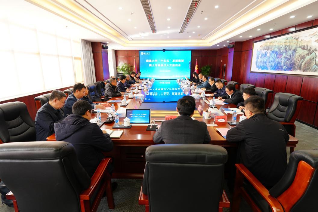 罗嗣海、陈晔光等校领导与中国工程院院士周创兵、中国科学院院士江风益、中国工程院院士谢明勇、中国科学院院士熊仁根等学校高层次人才代表齐聚一堂,集思广益,为科学编制学校“十五五”发展规划凝聚智慧、汇聚思路。
