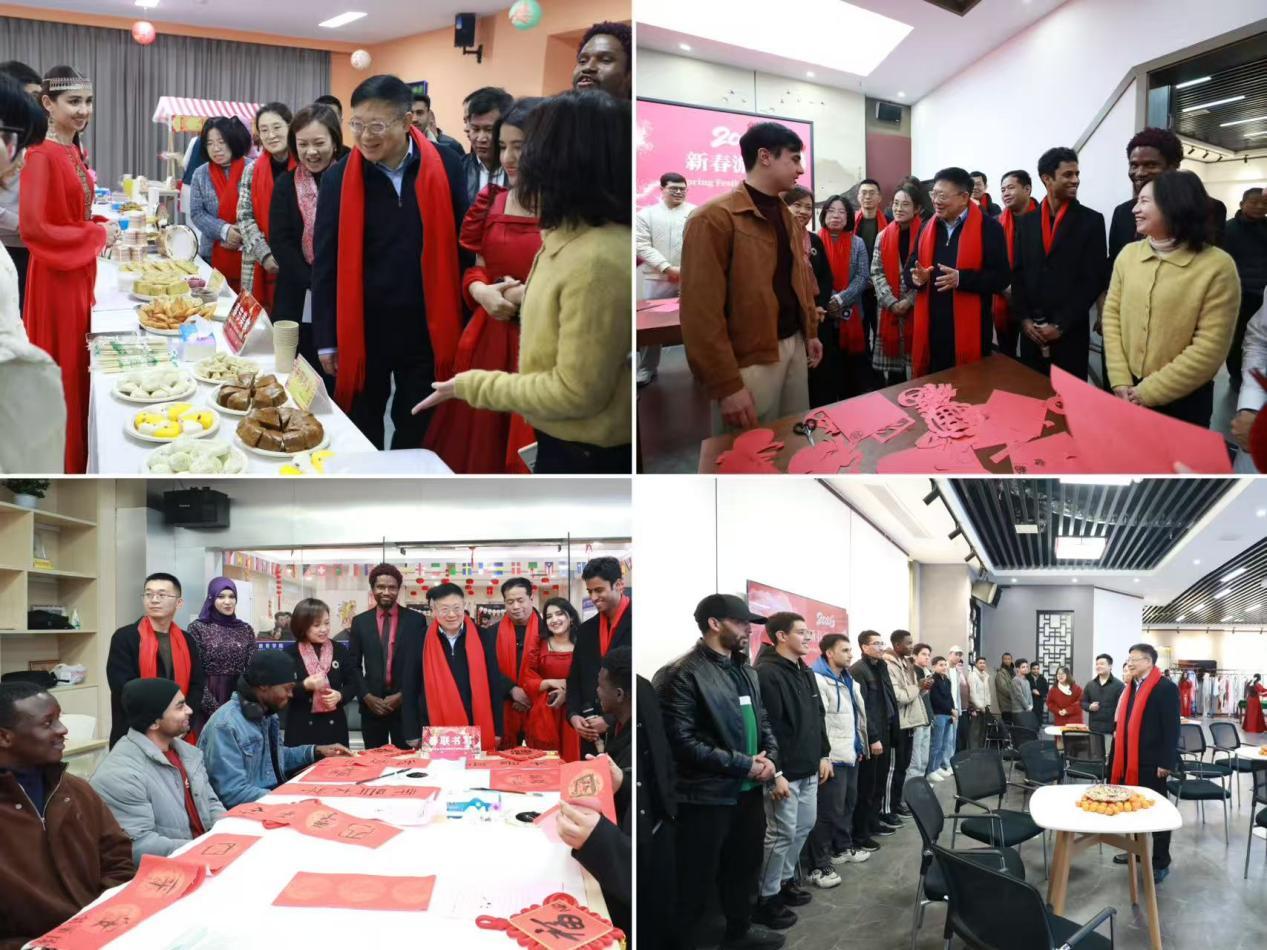 在国际教育学院,校领导与留校留学生一同参加新春游园会,现场观看传统文化展演,与同学们亲切互动、沉浸式体验中华优秀传统文化,同时细致询问大家的假期规划与学习生活近况,让异国求学的学子沉浸式感受中华传统节日的浓郁氛围。校领导贴心叮嘱同学们注意防寒保暖、科学规划作息,同时要求相关职能部门做实做细留校学生各项服务保障工作,用心用情解决同学们的实际需求,让留校学子在校园中也能感受到家一般的温暖与浓浓的年味。