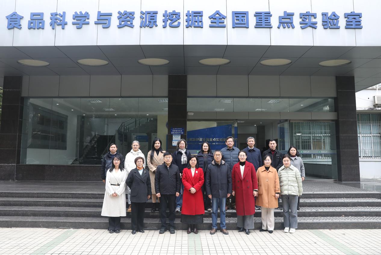 本网讯(食品科学与资源挖掘全国重点实验室)3月4日,在第116个“三八”国际妇女节到来之际,江西省科协第九届常委会女科技工作者工作委员会组织女委员、女科技工作者代表来到我校食品科学与资源挖掘全国重点实验室调研考察。省科协党组书记曾萍,省科协兼职副主席、女科技工作者工作委员会主任成静清、王维琴,省科协二级巡视员、女科技工作者工作委员会副主任邱翃,女科技工作者委员会副主任杨慧,中国工程院院士、重点实验室主任谢明勇,重点实验室常务副主任熊涛,校党委常委、宣传部部长徐亮出席活动。