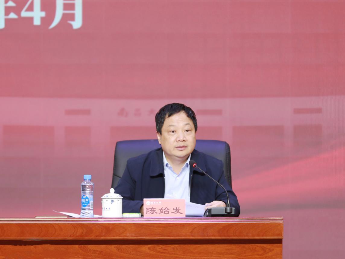 陈始发强调,过去一年,在校党委的坚强领导下,学校宣传思想文化工作亮点纷呈、可圈可点,政治安全和意识形态安全屏障更加牢固,思政文化工作迈上新台阶,理论武装走深走实,新闻宣传影响力持续扩大。今年以来,学校坚持“早谋划、快行动、抓落实”,各项工作取得良好开局。做好2026年学校宣传思想文化工作,要扎实推进立德树人机制综合改革试点落地见效。要一体推进理论学习、宣传教育、研究阐释,持续深化理论武装。要始终把政治安全和意识形态安全摆在首位,筑牢风险防控坚固防线。要构建“大宣传”格局,让南大声音更响亮、更有影响力,为学校高质量发展凝聚干事创业的强大合力。
