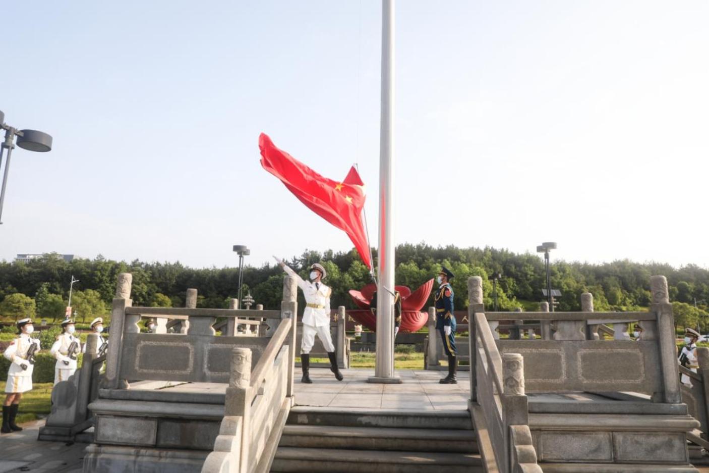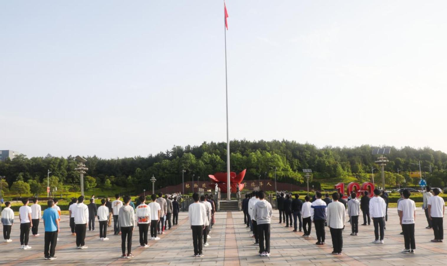 升旗仪式在齐唱《歌唱祖国》中落下帷幕。校领导,各党群、行政部门主要负责人及学生代表现场参加活动。近2万人在线参加升旗仪式,截至发稿时点赞量达23万+。