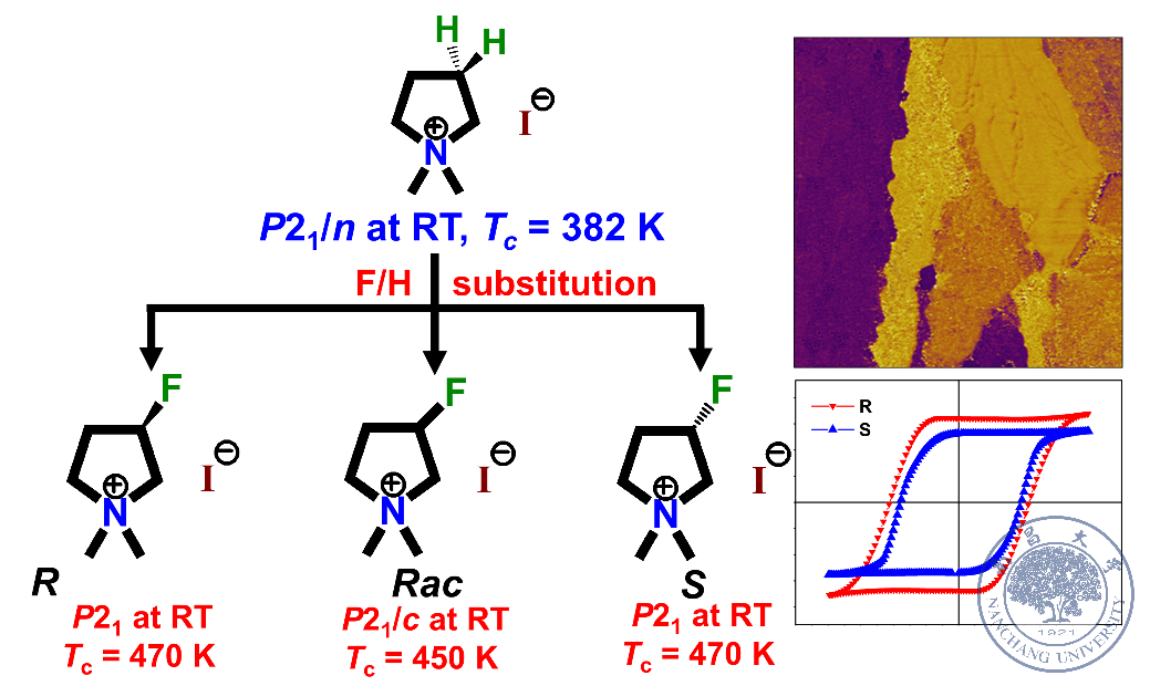 本次相关研究成果以《通过F/H取代获得的最高相变温度有机对映体铁电体》(Highest-Tc organic enantiomeric ferroelectrics obtained by F/H substitution)为题,在学术期刊《化学通讯》(Chemical Communications)上发表。南昌大学为唯一完成单位。