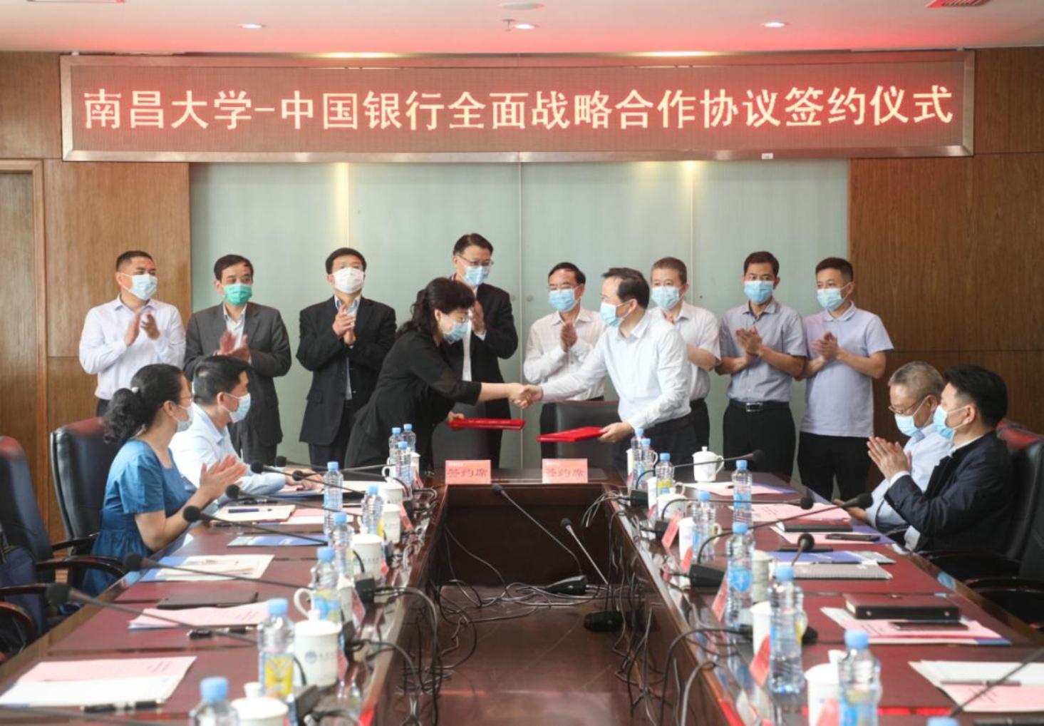 本网讯(记者涂金凤)5月26日上午,我校与中国银行股份有限公司江西省分行战略合作协议签约仪式在前湖校区举行。校党委书记喻晓社,中国银行江西分行党委书记、行长蔡兴华出席仪式。