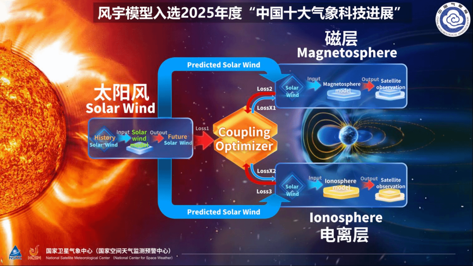 “风宇”是中国气象局正式发布的国家级人工智能预报模型之一,已入选2025年度“中国十大气象科技进展”。该模型由中国气象局联合南昌大学共同研发,华为提供国产算力与工程化支撑,围绕太阳、地球磁层、电离层—热层三大区域,构建空间天气智能预报体系。目前,“风宇”已形成近20个创新模型或模块,覆盖不同区域、不同物理过程和不同层次的关键问题,具有鲜明的链式建模与协同预报特色。