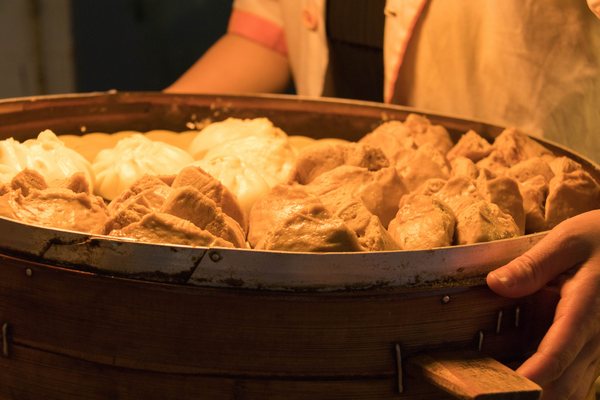包子:柔韧的面团铺展开裹住馅料和汤汁,一只只雪白的包子在蒸笼里热气腾腾。紧实而有嚼劲的老面、鲜美多汁的肉馅,一切都刚刚好,美味极了。(摄影记者:杨钰欣)