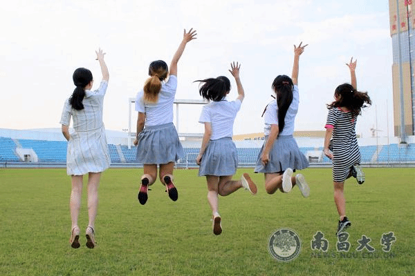 操场上奋力跳跃的我们,仍记得多少日子里,在这片湿湿的草地上坐了好久好久,那时,我们总嫌讲话时间太长,现在,我们发现时光走得太快。(摄影:温雨薇)