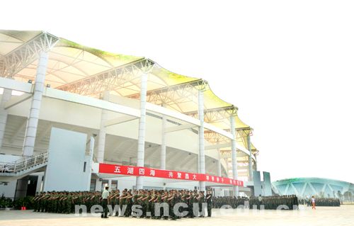 9月20日,新生军训正式开始,头顶的烈日考验着每一个人,告别父母,他们大学生活的画卷如此展开,汗水、泪水在所难免,但是,经过这短短的8天,他们在大学的步伐将更加坚定……