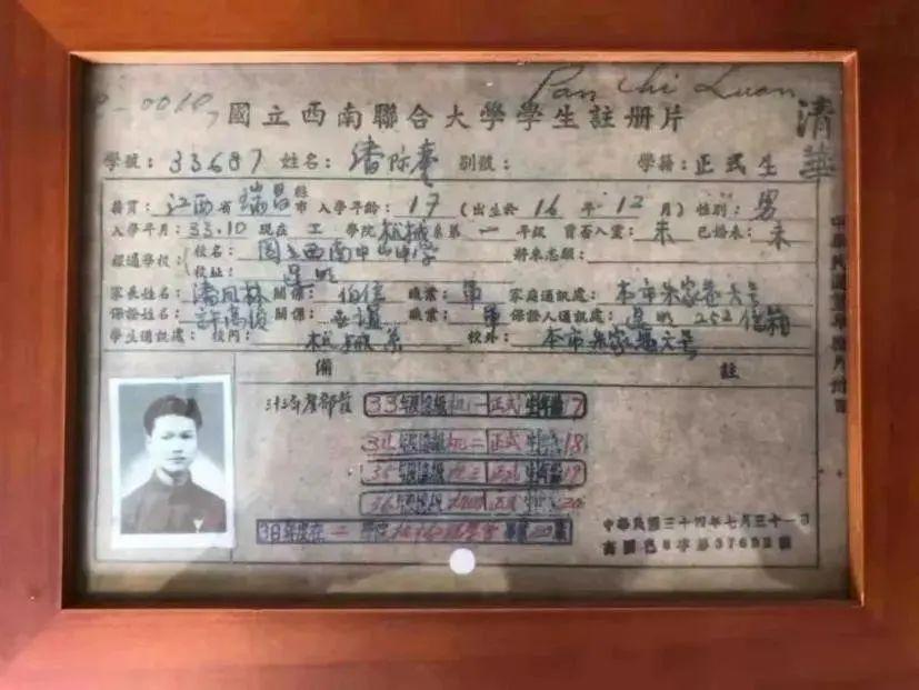 潘际銮在西南联合大学的学生注册片 图源:清华大学
