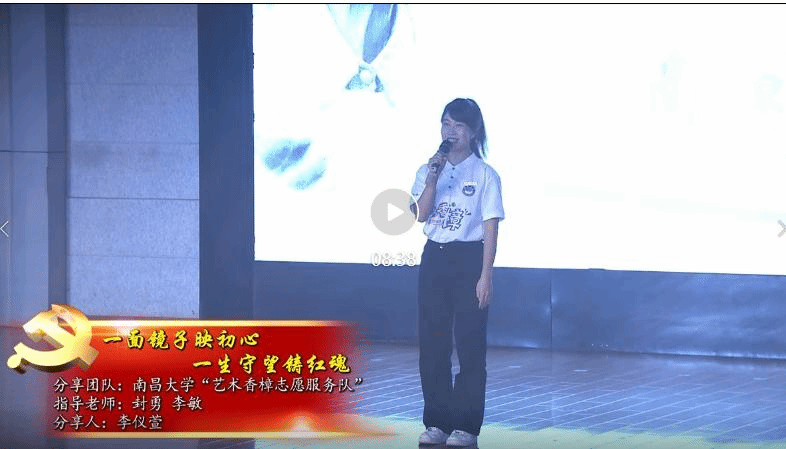 2021年12月20日,江西省委教育工委、省教育厅举办了第二届江西高校大学生红色文化论坛,青年大学生们走上台,分享他们在“红色走读”活动中的收获和感悟,讲述他们的青春奋斗故事。今天带来南昌大学“艺术香樟志愿服务队”李仪萱同学红色走读分享:《一面镜子映初心 一生守望铸红魂》。
