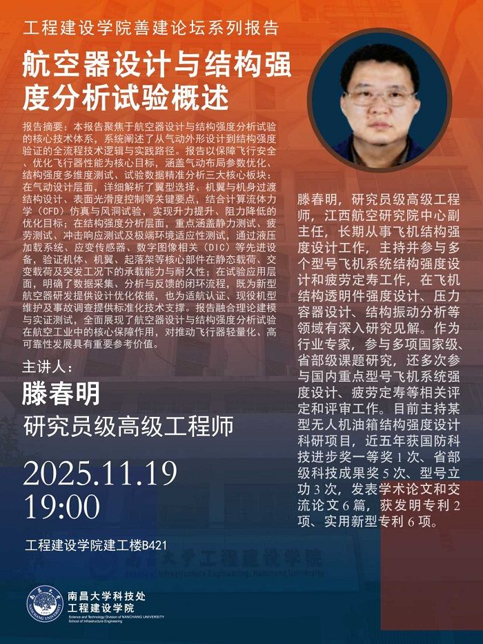 工程建设学院善建论坛系列报告:航空器设计与结构强度分析试验概述