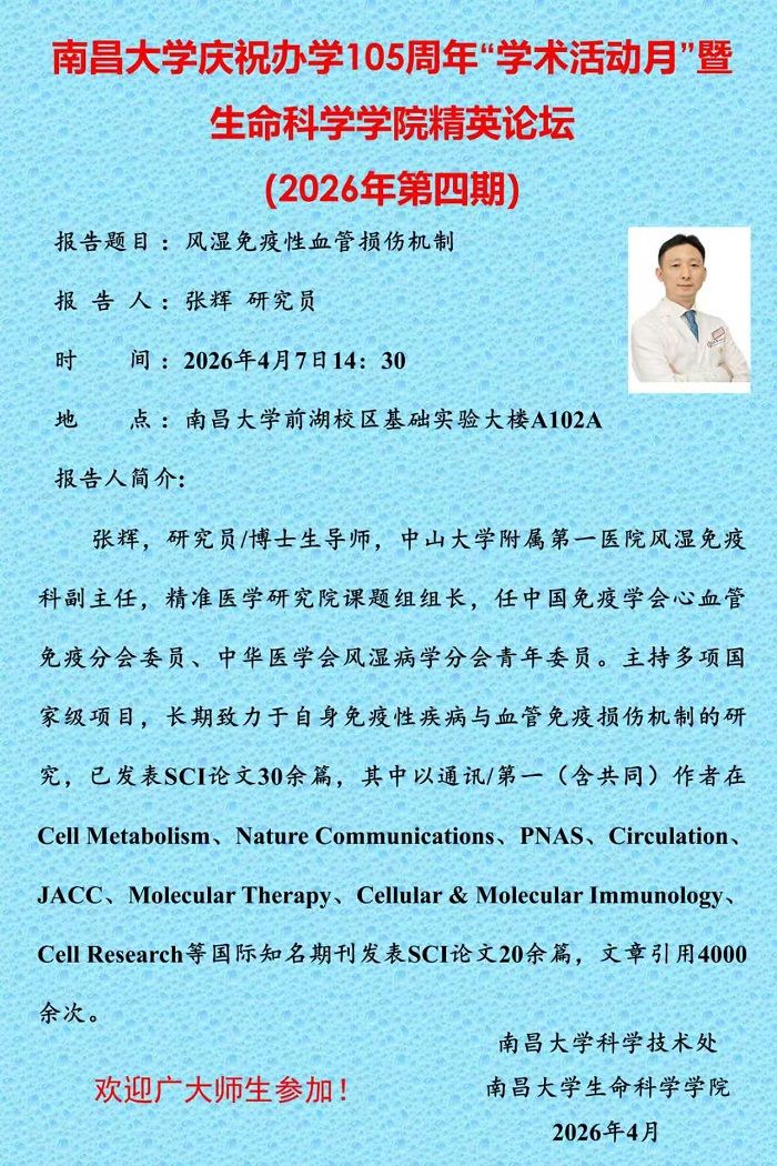 南昌大学庆祝办学105周年“学术活动月”暨生命科学学院精英论坛(2026年第四期)