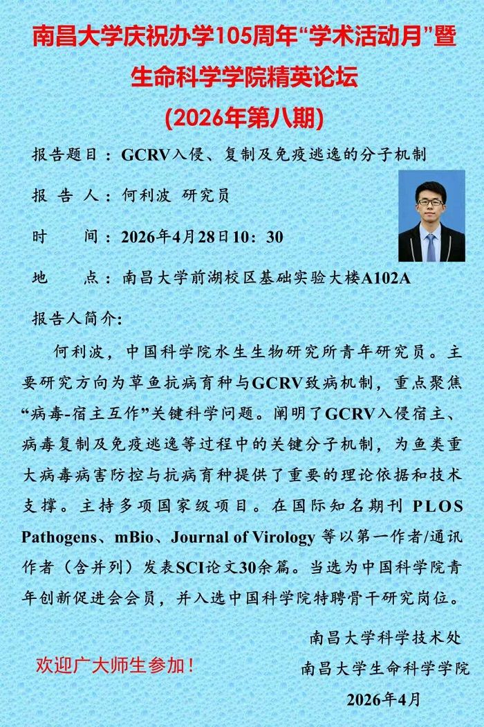 南昌大学庆祝办学105周年“学术活动月”暨生命科学学院精英论坛(2026年第六期)
