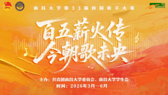 为喜迎南昌大学办学105周年,向广大青年学生提供展示自我、锻炼才能、促进交流的舞台,营造以文化人、以美育人、团结奋进、守正创新的校园文化氛围,特举办南昌大学第三十三届校园歌手大赛,现将有关事项通知如下: