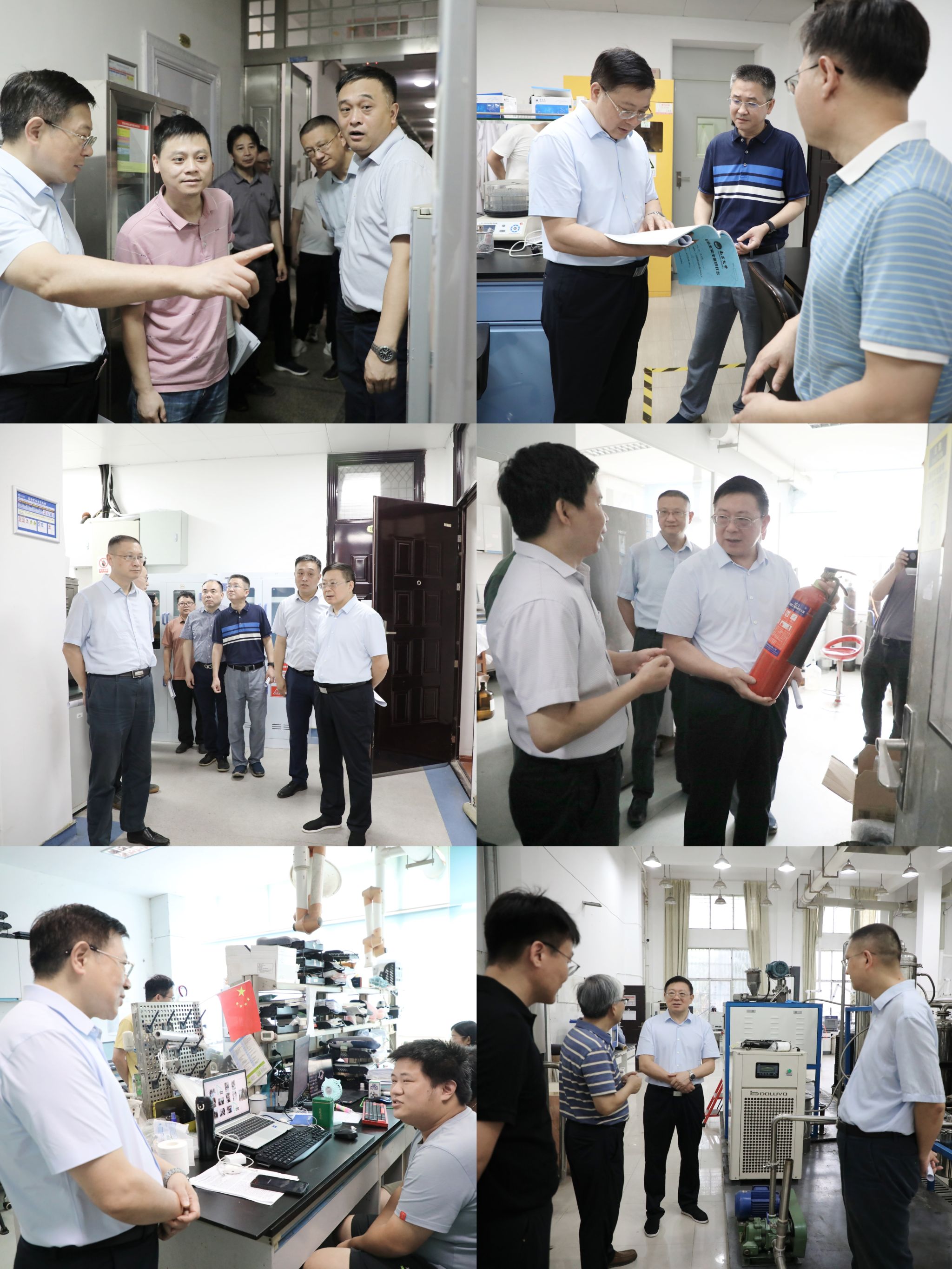 罗嗣海一行先后来到东湖校区基础医学院、药学院、公共卫生学院,青山湖北区食品科学与资源挖掘国家重点实验室、生物质转化教育部工程研究中心、中德食品工程中心等处,重点检查了消防通道、消防系统、消防设施、房屋结构、供电线路等方面情况,做到消除安全隐患不留死角。